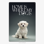 La targa Maltese Puppy porta un tocco di allegria e design in ogni ambiente. Realizzata in alluminio resistente alle intemperie, raffigura un simpatico cucciolo di Maltese accompagnato dalla frase Home is where my dog is (la casa è dove c’è il mio cane).