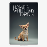 La targa Chihauhau Puppy porta un tocco di allegria e design in ogni ambiente. Realizzata in alluminio resistente alle intemperie, raffigura un simpatico cucciolo di Chihauhau accompagnato dalla frase “Home is where my dog is” (la casa è dove c’è il mio cane).