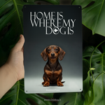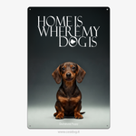 La targa Dachshund Puppy porta un tocco di allegria e design in ogni ambiente. Realizzata in alluminio resistente alle intemperie, raffigura un simpatico cucciolo di Bassotto accompagnato dalla frase “Home is where my dog is” (la casa è dove c’è il mio cane).