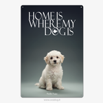 La targa Poodle Puppy porta un tocco di allegria e design in ogni ambiente. Realizzata in alluminio resistente alle intemperie, raffigura un simpatico cucciolo di Barboncino Toy accompagnato dalla frase “Home is where my dog is” (la casa è dove c’è il mio cane).
